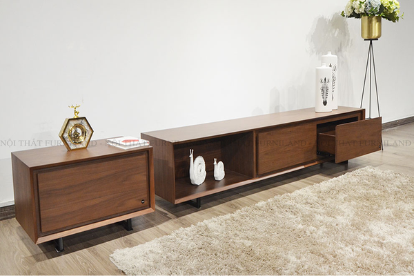 Thiết kế: Với thiết kế hiện đại, kệ tivi TEMPO mang lại không gian sống sang trọng cho gia chủ. Sản phẩm dành cho những khách hàng yêu thích các dòng nội thất từ gỗ óc chó. Đây là 1 trong số 4 mẫu kệ tivi mới nhất được tạo ra bởi sự hợp tác giữa FURNILAND và ASAHI, Nhật Bản sử dụng chất liệu gỗ óc chó tự nhiên kết hợp Veneer.